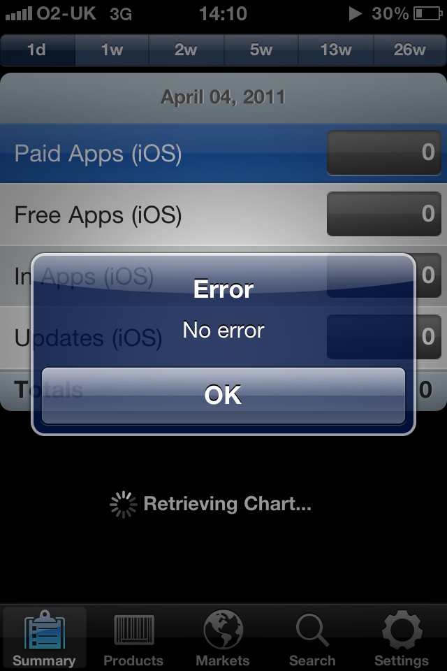 Using the iTunes Connect mobile app prompted me with this error (or is it a non error?)! Not very friendly or helpful 😉