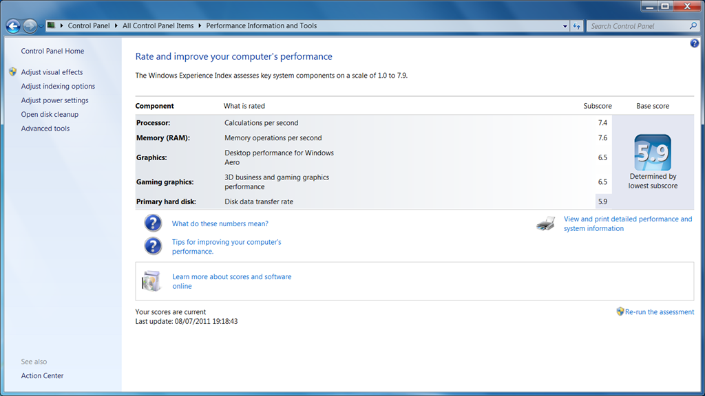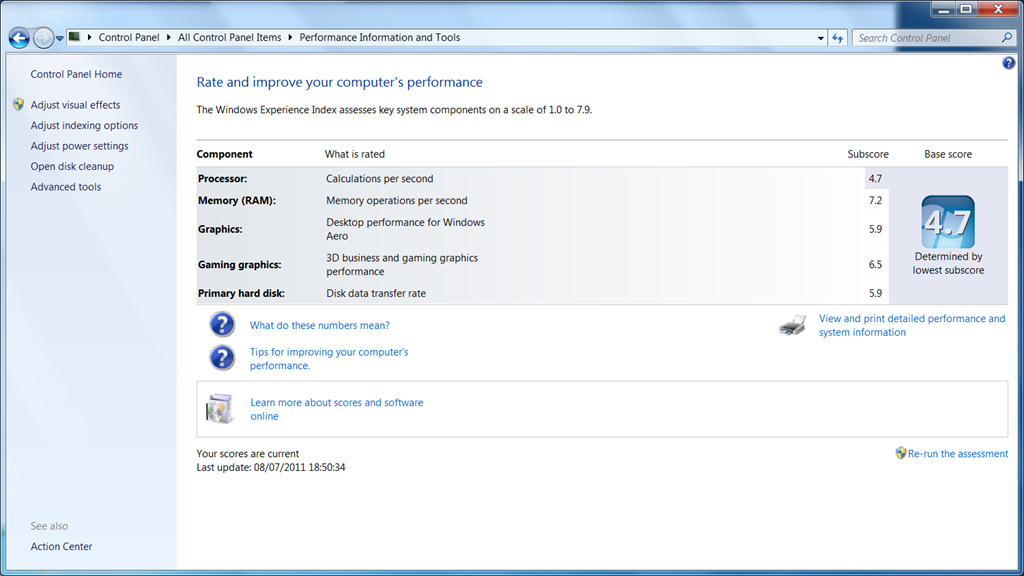 Not a very impressive score for my brand new Lenovo Thinkpad T520 – The processor is a quad core i7 and it gets a lousy 4.7 in the performance rating…