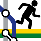 The primary logo is on the left and features a few tube lines and a running man, the core identity of the app. By altering the logo slightly, we made part of the image transparent, so the theme colour makes forms part of the logo, representing a tube line.