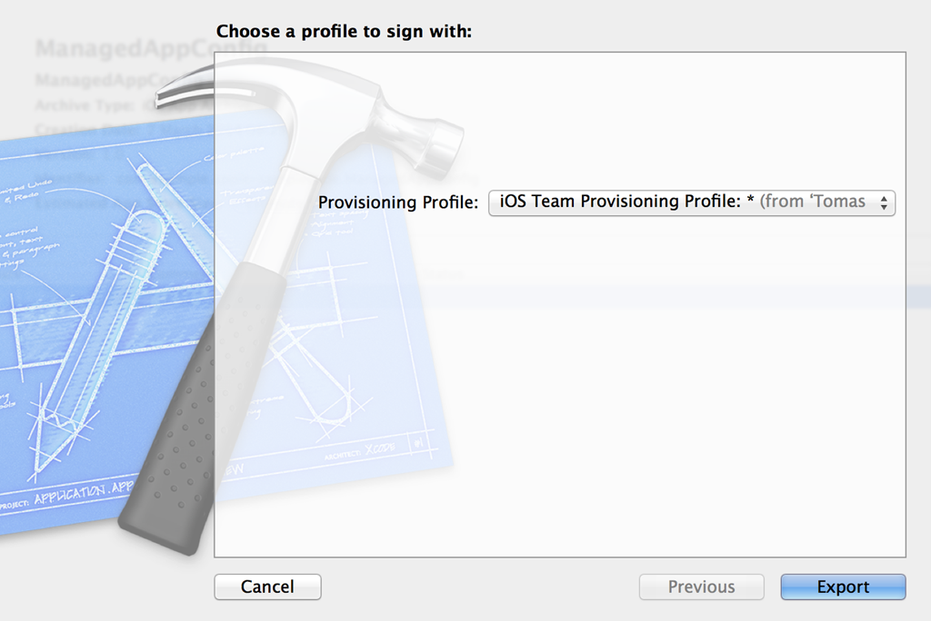 Sign the with the provisioning profile that was created. In this case, I am using my WildCard development profile.