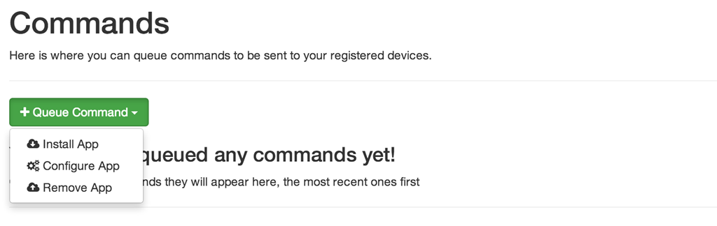 Open the commands page view and from the Queue Command dropdown, choose Install App.