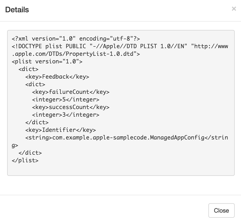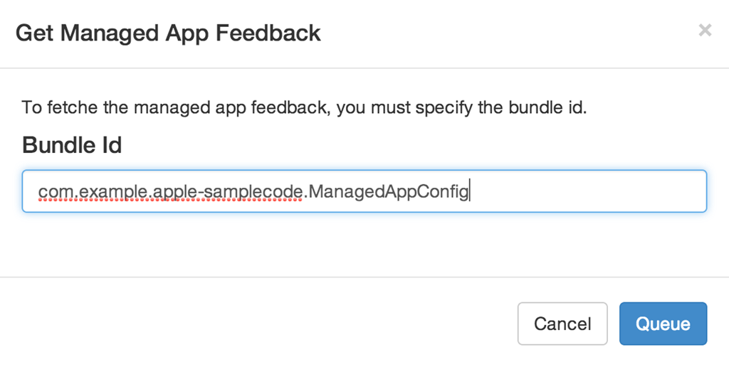 Enter “com.example.apple-samplecode.ManagedAppConfig” as the bundle identifier, assuming you haven’t changed it from the value in Apple’s code. The command will be queued.