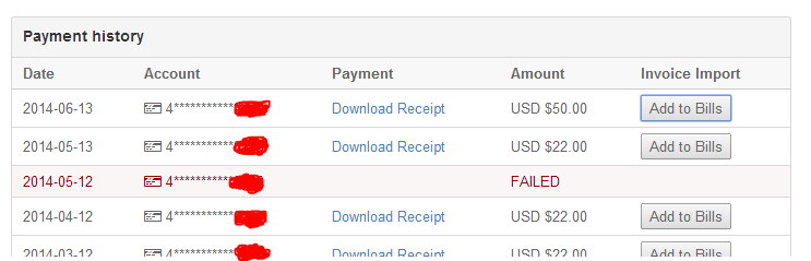 The button Add to Bills is automatically inserted by my extension. It can read the row, pick up the date, download the PDF invoice automatically and upload it to my FreeAgent account. Things like the Currency still need to be manually modified, but the bulk of the work is done.