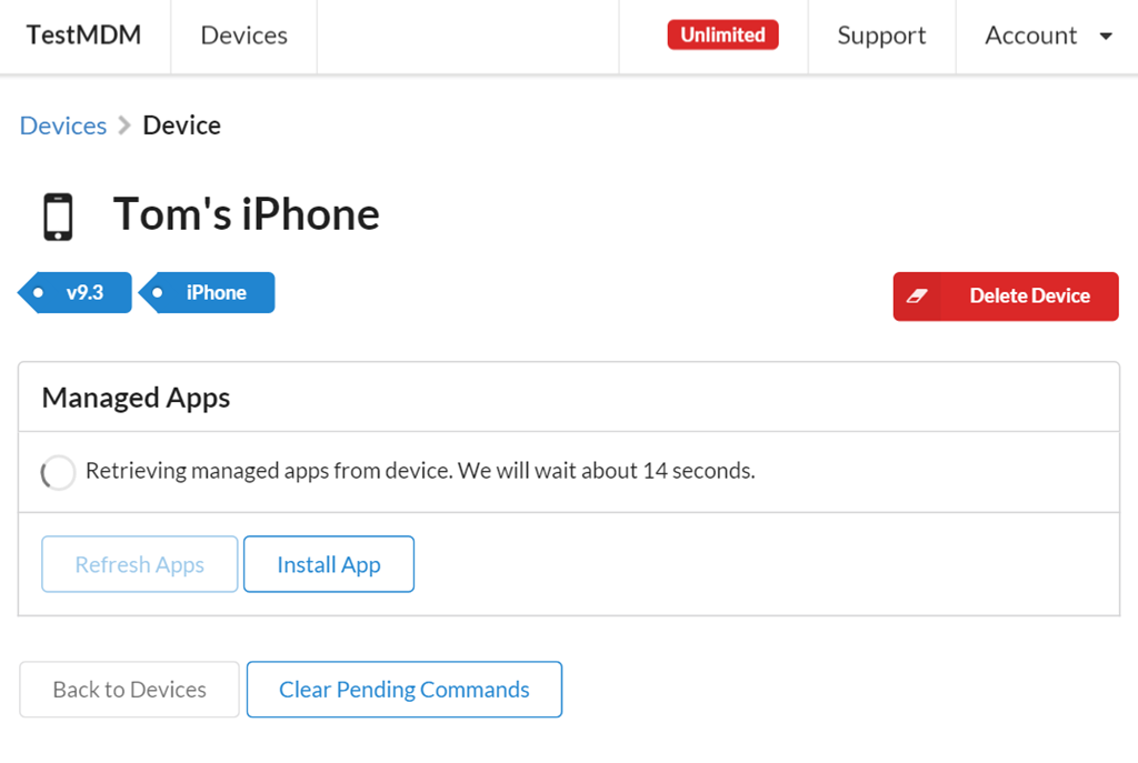 The biggest change to TestMDM is the way you interact with it. In version 1.0, the focus was around commands. Creating them, sending them, waiting for them to be acknowledged. This was an effort to keep the app aligned with the actualy behaviour of the MDM protocol that underpins iOS.