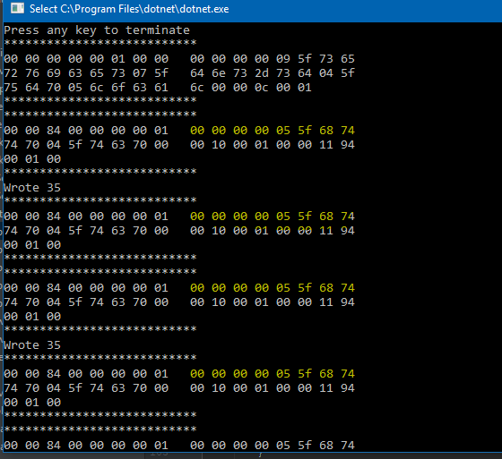 From Part 1 and Part 2, you can see we have grabbed the a request and parsed it successfully. The next step is to actually answer the request. At this point, I started using Wireshark. I didn’t use it in the beginning because I totally forgot about it 🙂
