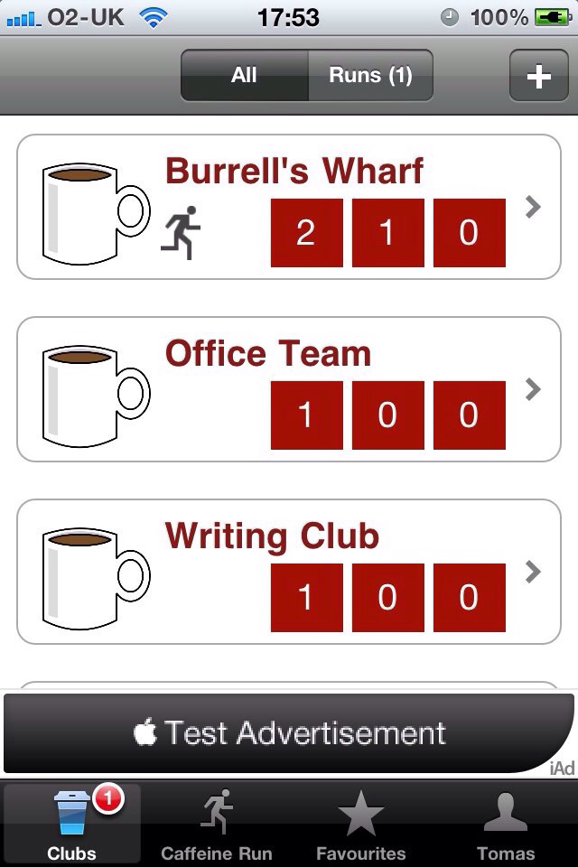 I came across this screenshot from my first iPhone app, Caffeine Club. Not the most visually pleasing app ever created, but I had fun building it!