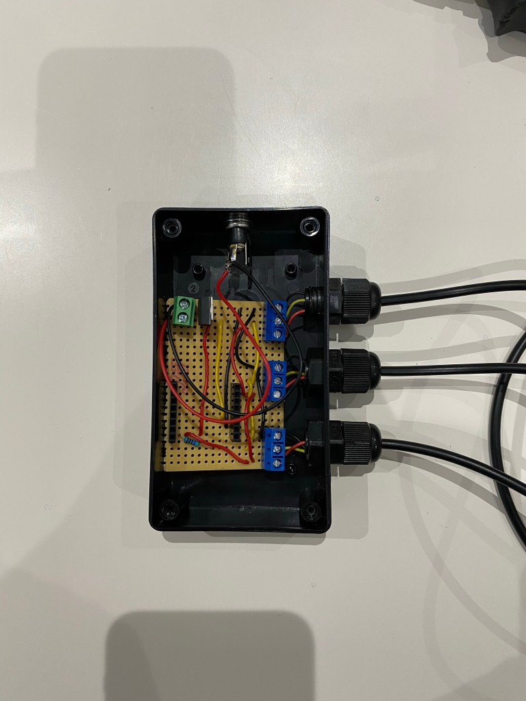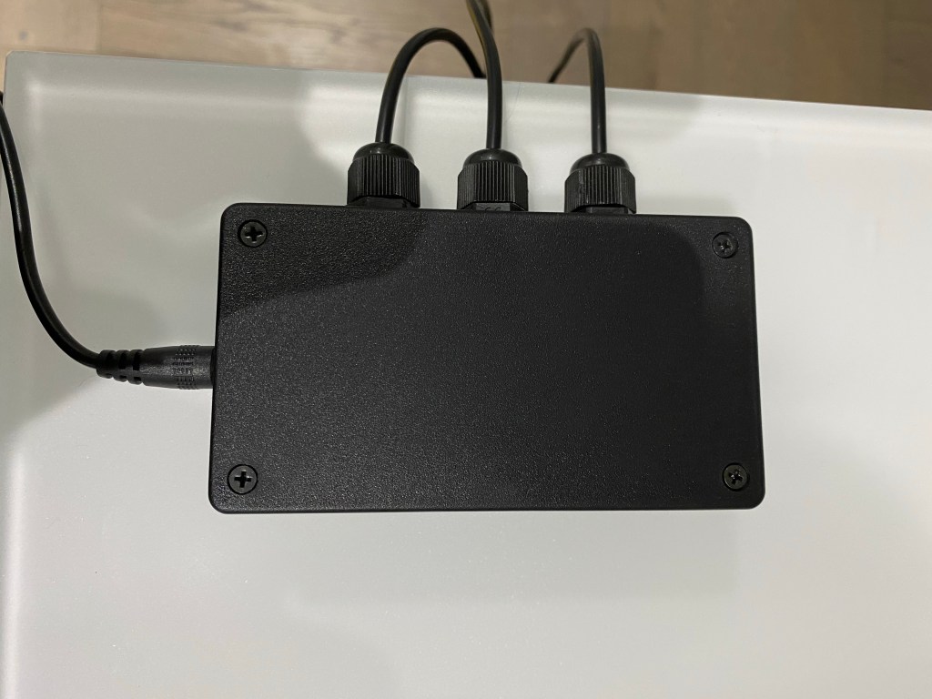I drilled four holes. One for each of the temperature probes and one for the power connector. The probes are held by three IP68 glands. Not necessary at all, but I just had them and thought they’d suit.