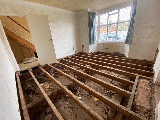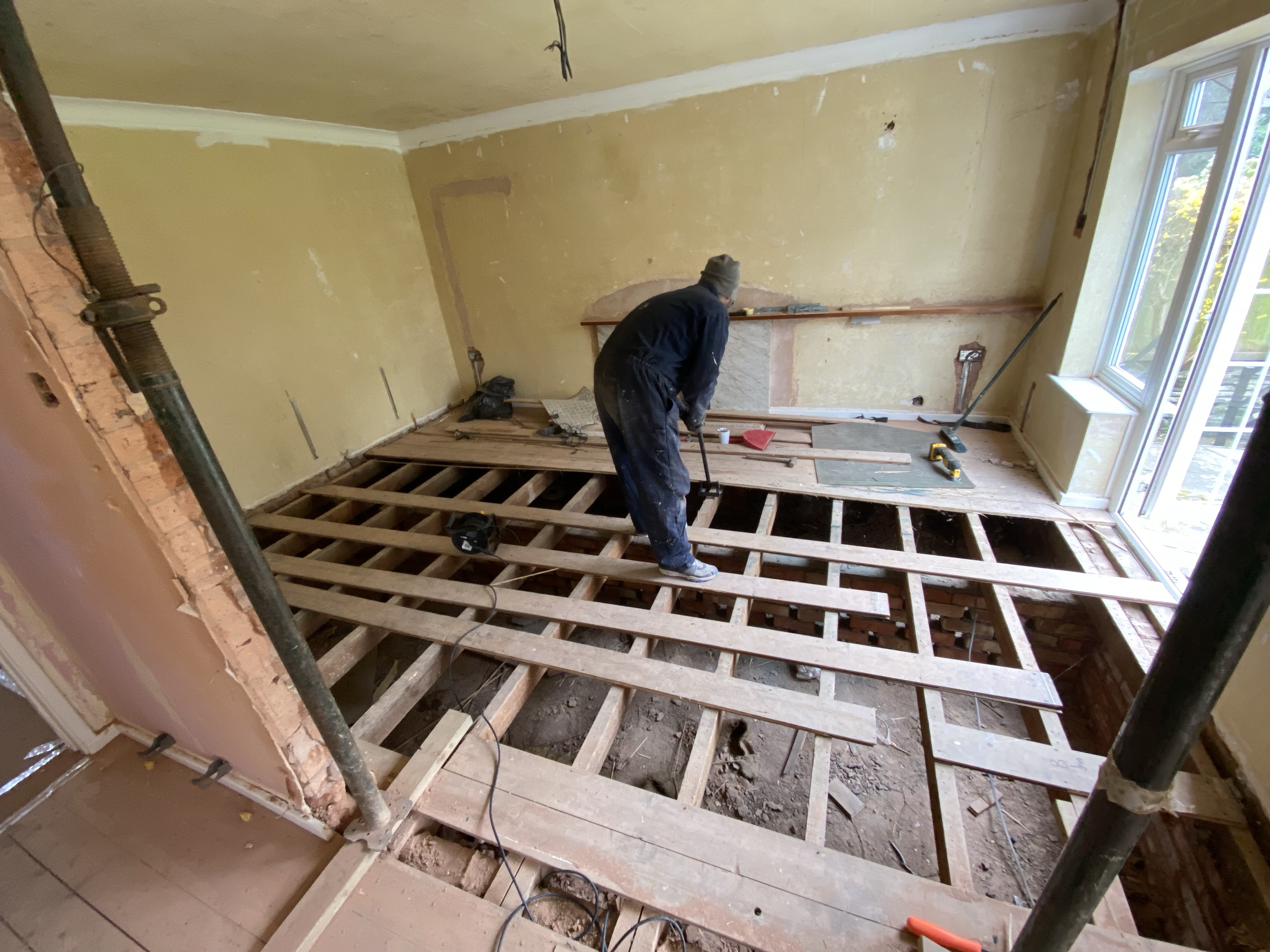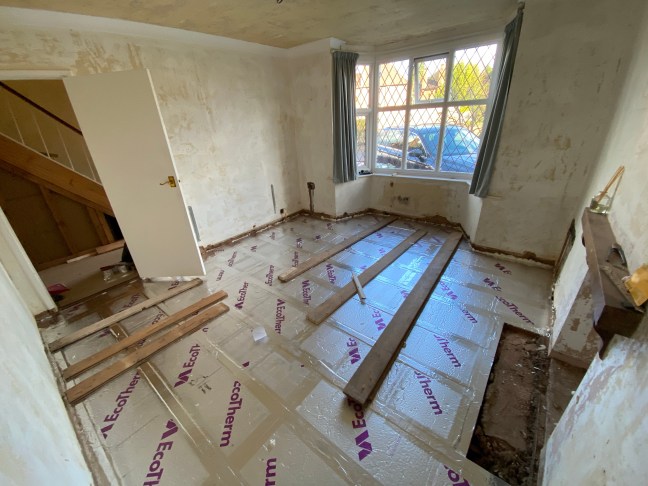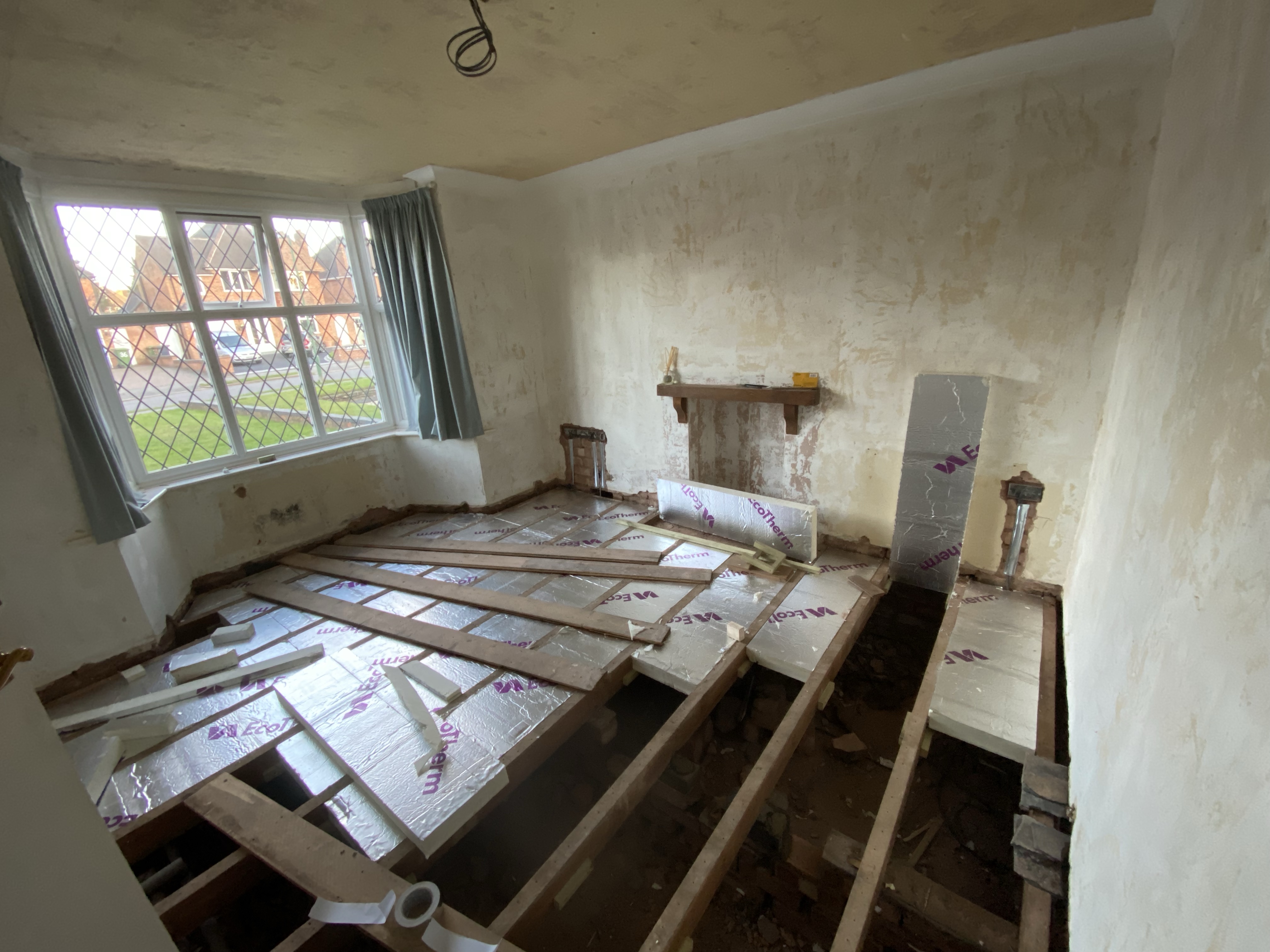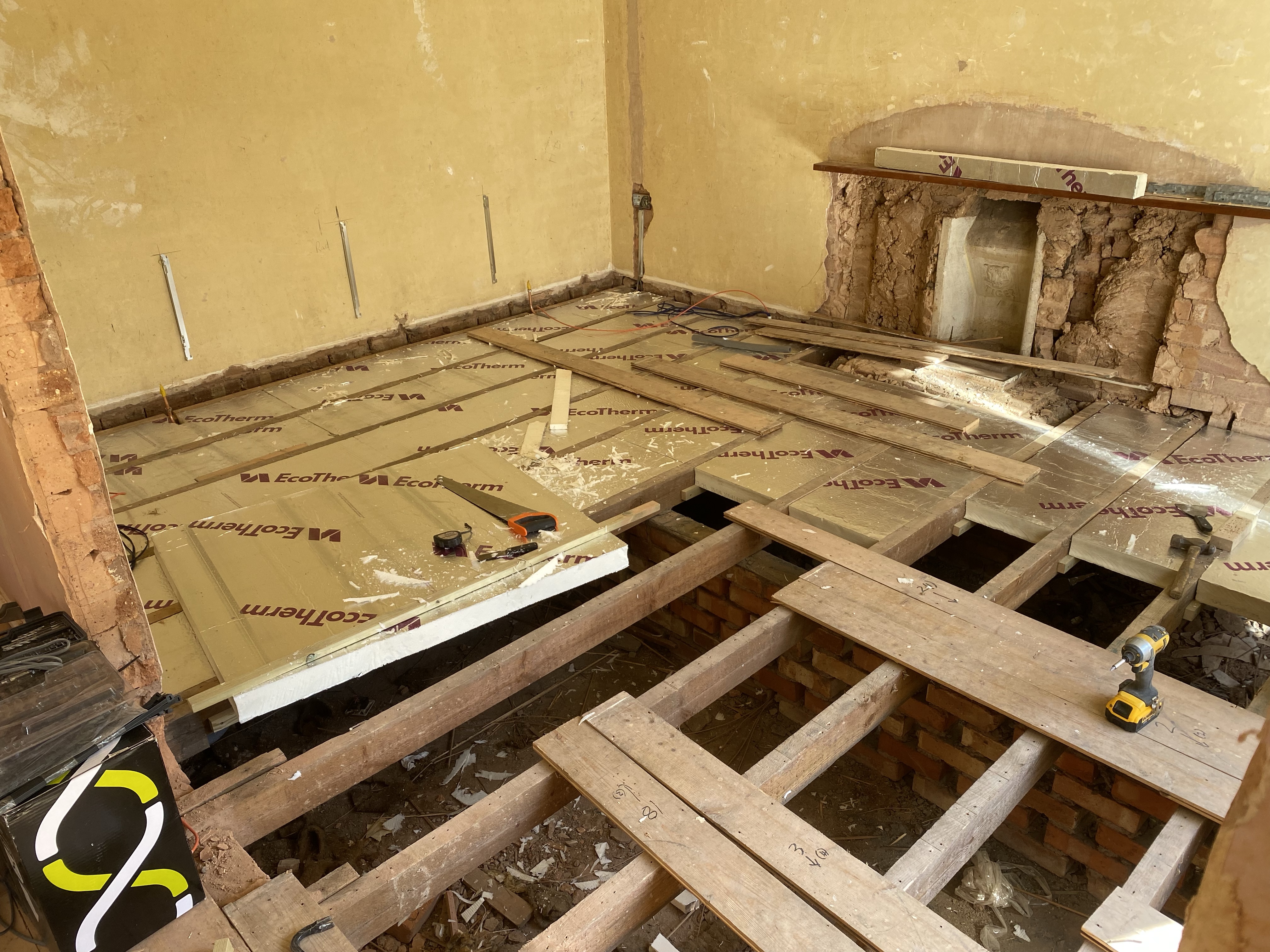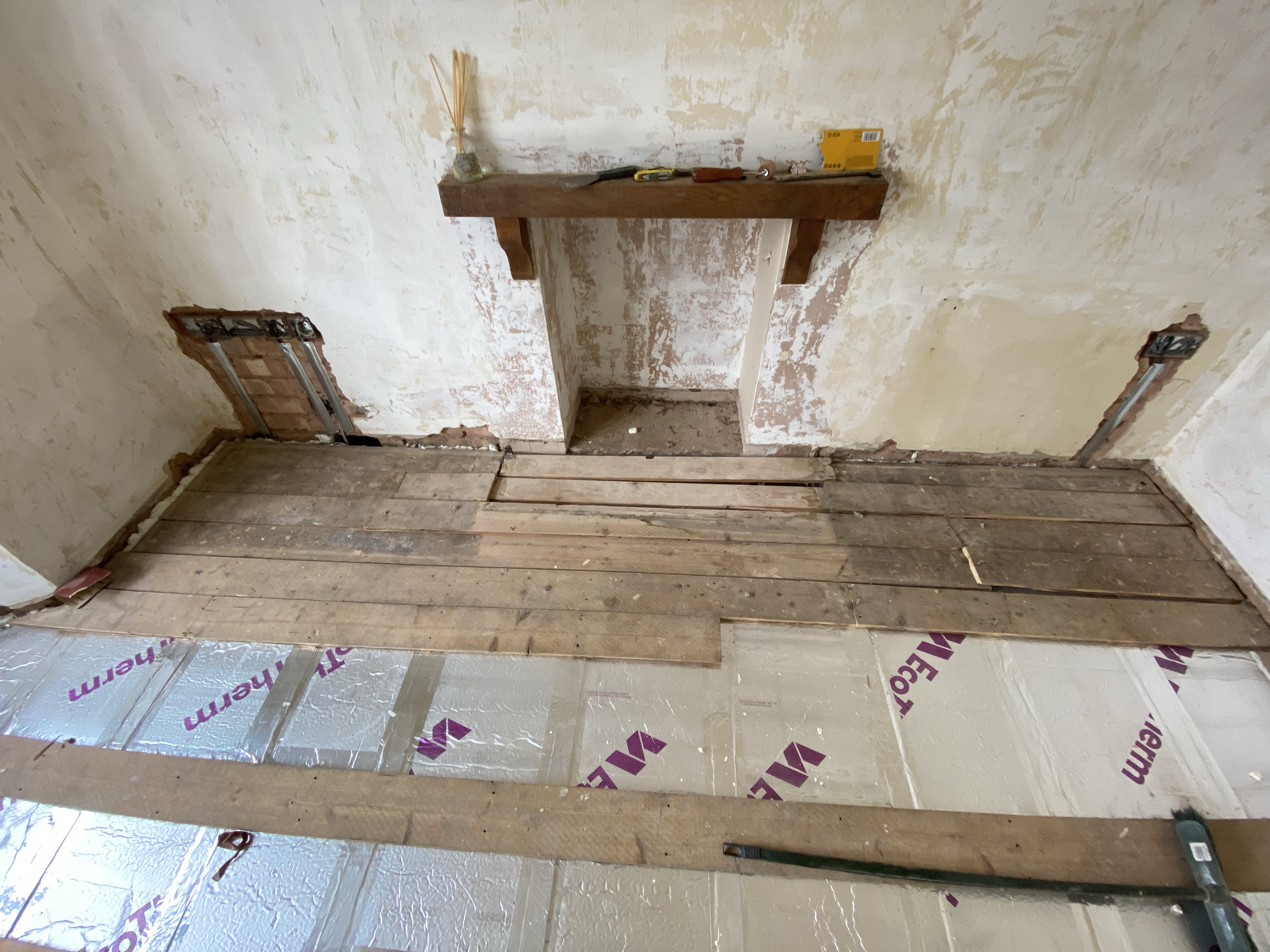 The electrician and plumber had already lifting some of the boards during their first fix, so we had some space to work with.