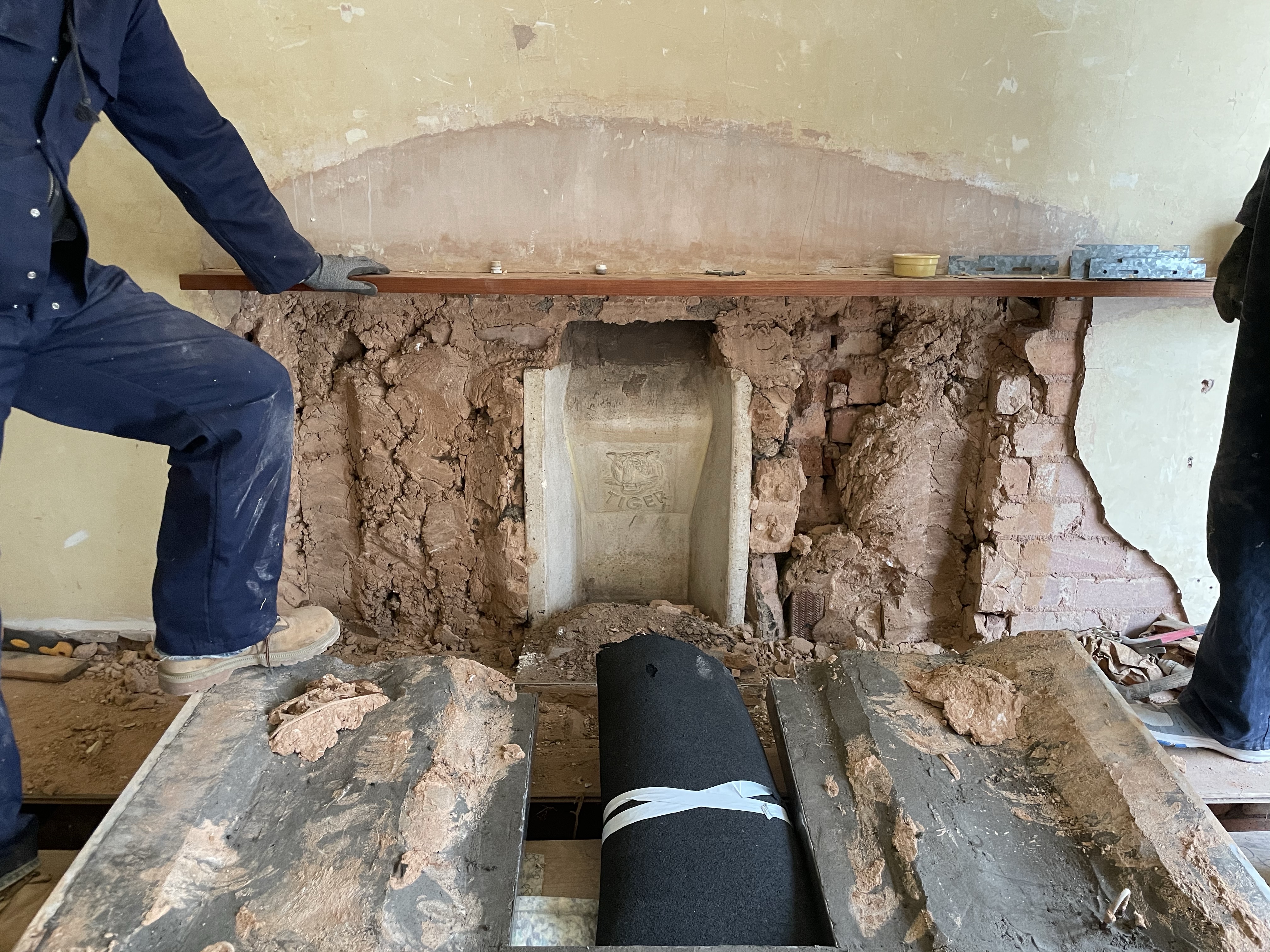 The joists were in amazingly good condition, which was nice. A part of the shadow wall had collapsed, so we made a note to fix that. You can just make it out in the picture. One of the joists was also resting in the airbrick’s space, so we made a note to fix that up too.
