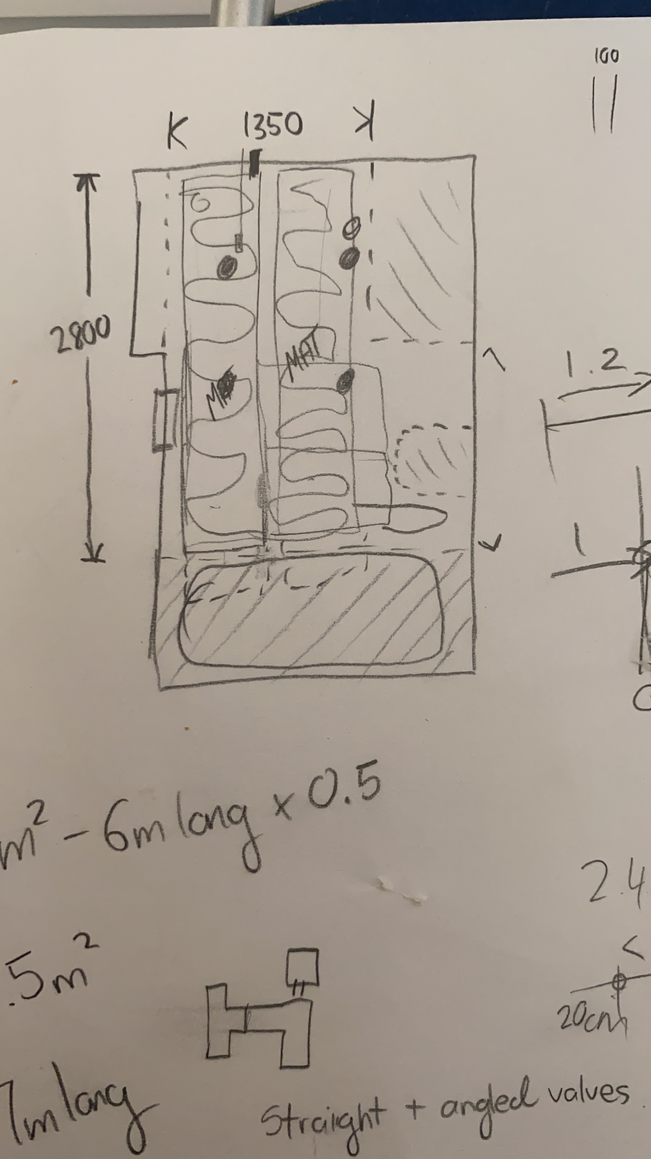 As we had chosen a tiled floor, we decided that we’d use a combination of a towel rail and underfloor heating (UFH). The towel rail to dry our the towels and the UFH to ensure the tiles weren’t too cold in the winter!
