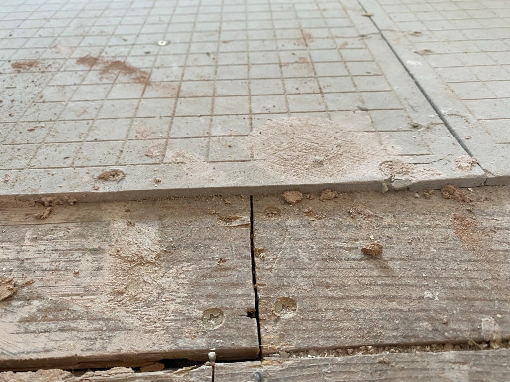At this point, I was very conscious of what the finished floor level would be. The backing board, the mat and then the tiles. One problem at a time.