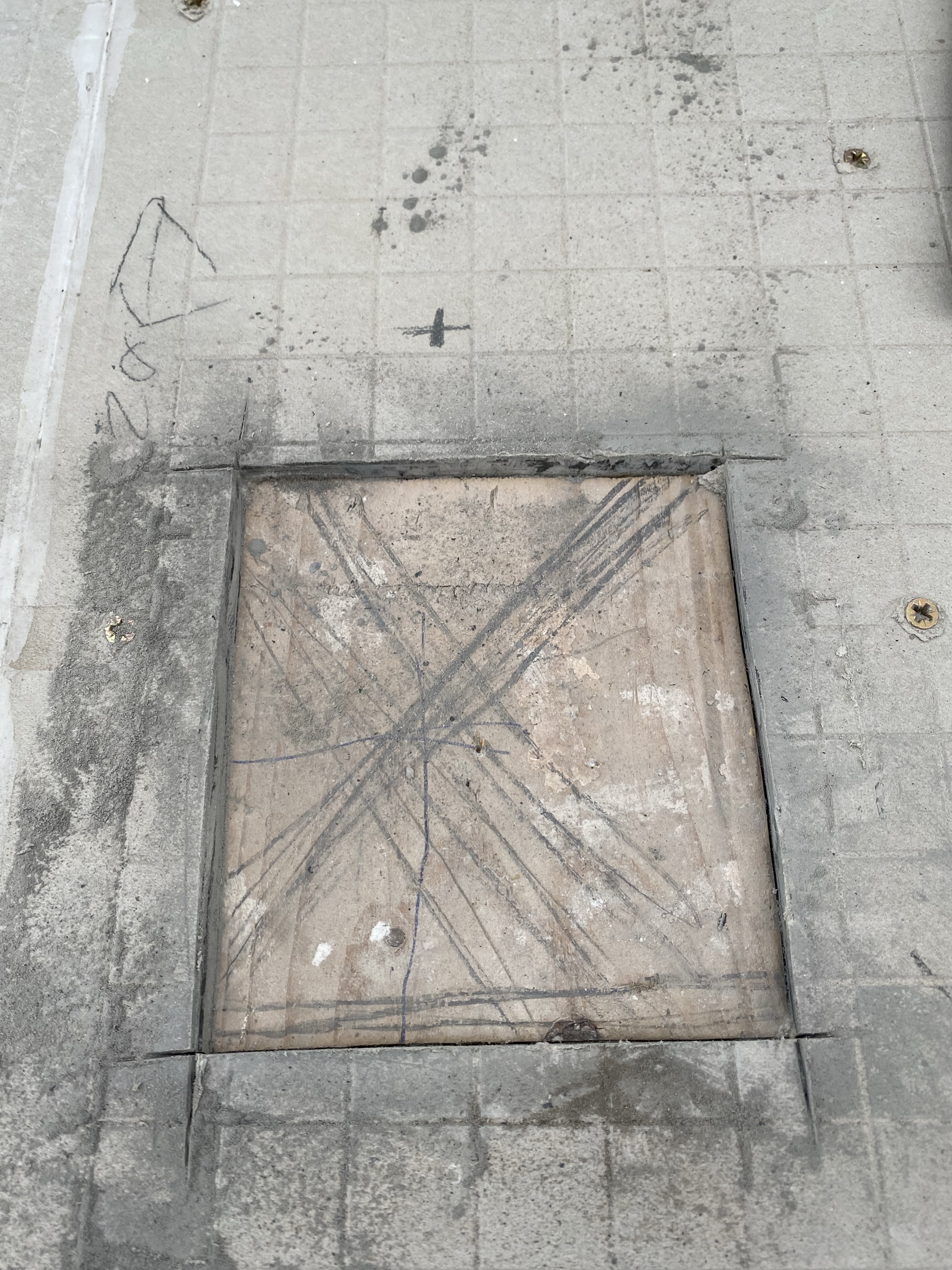 Next, I had to cut a whole in the floor and locate the bath waste. The plumber had left a mark on the subfloor, which *thankfully* I had photographed!!