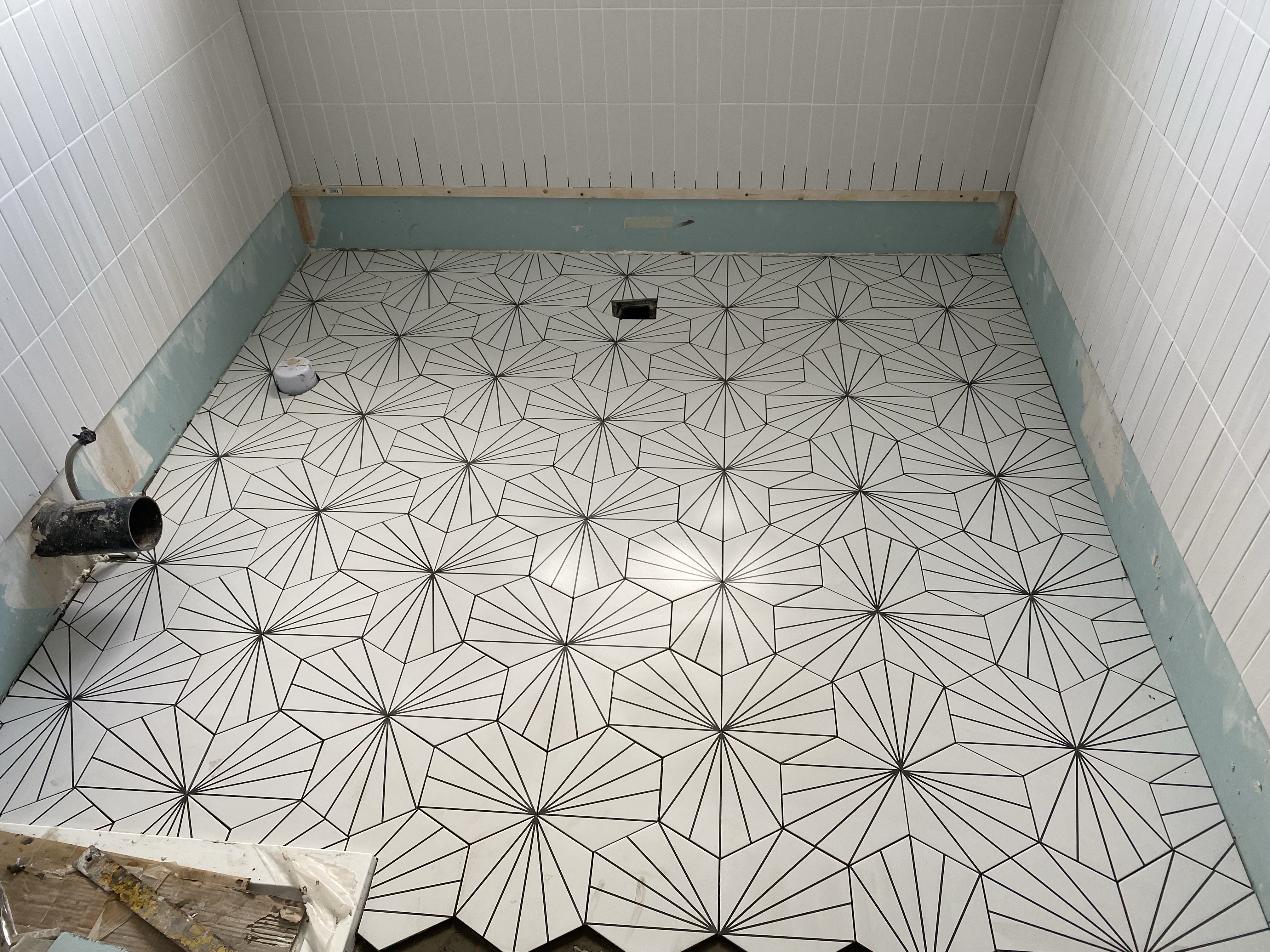 After 24 hours, the floor was ready to walk on. I checked the resistance of the mat and temperature probe for the umpteenth time and all was good. The tiler then set to work.