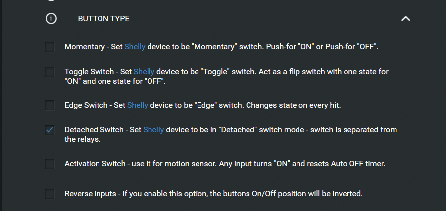 Somewhere in the past 18 months, Shelly added a new Button Mode into their settings called Detached Switch.