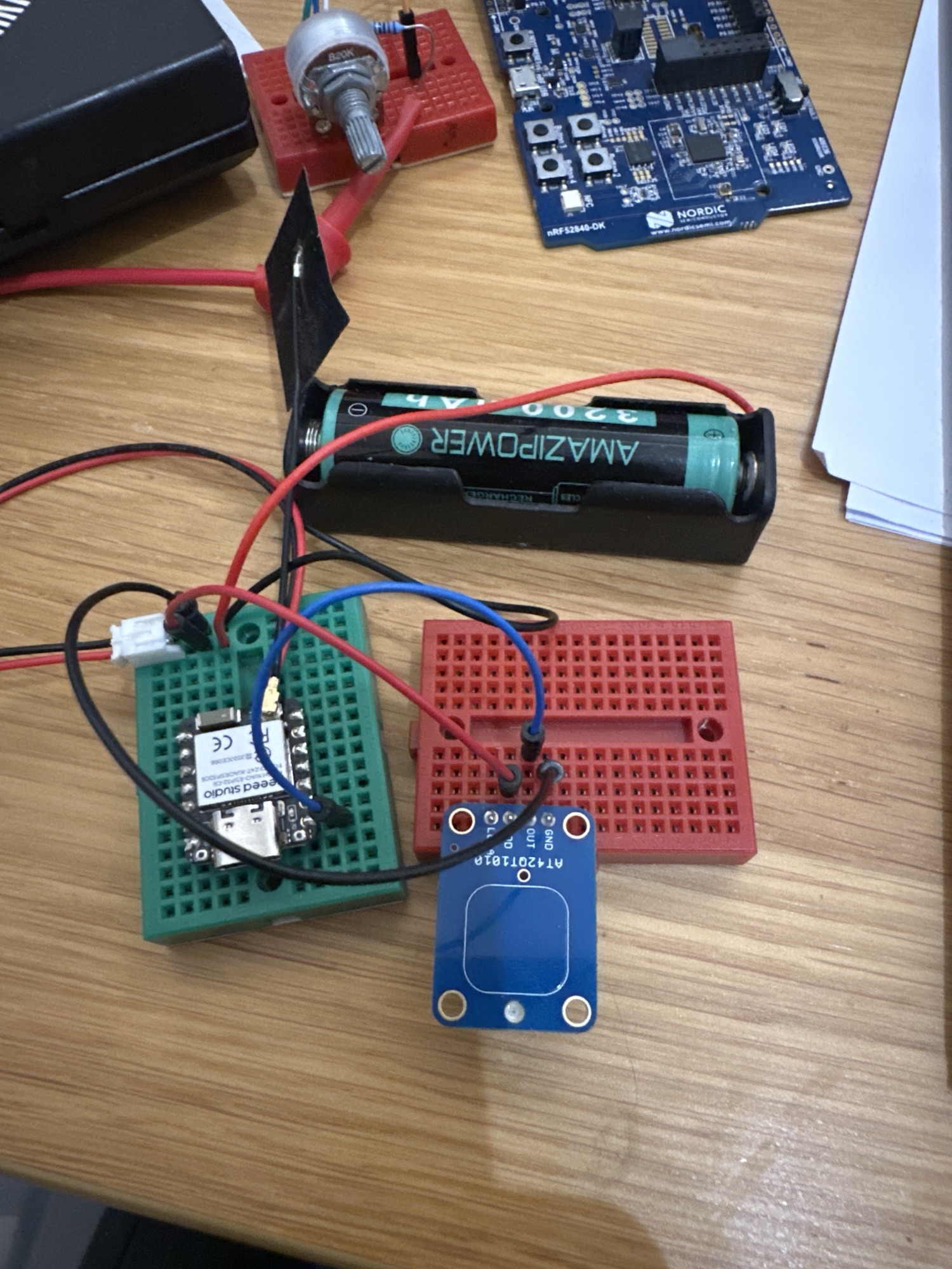 For the button, I decided to give a capacitive button a go instead of a mechanical button. They are thin and small. They consume power, but I thought they were a good starting point. I picked up an AT42QT1010 from PiHut as a starter for 10.