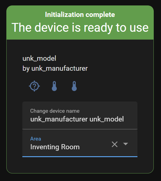 I immediately opened Home Assistant and started the pairing process. Sure enough, the device appeared and got added in, with the two temp probes showing!