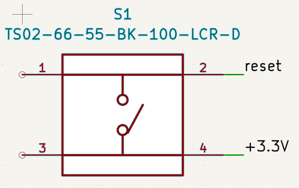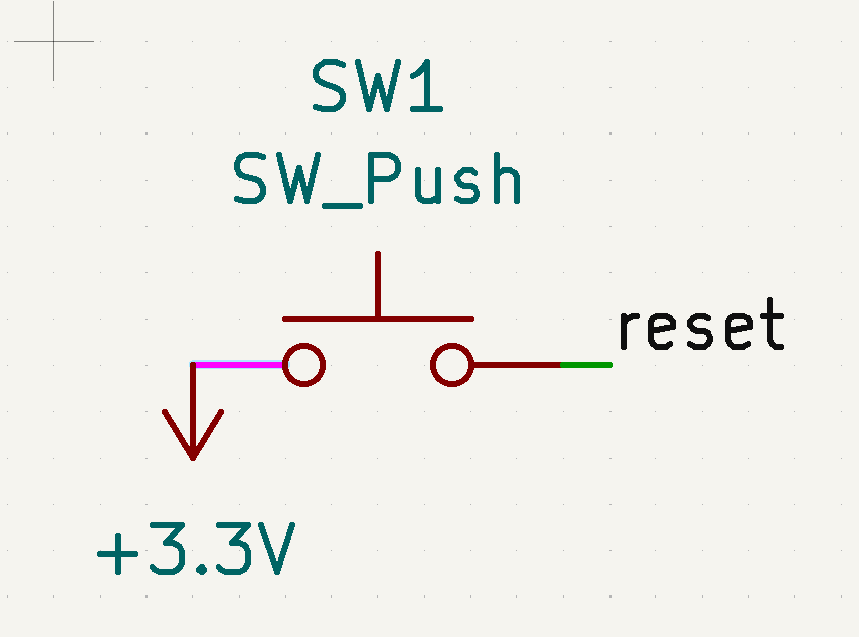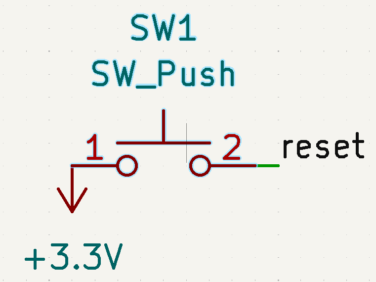 When designing my PCB in KiCAD , I popped a SW Push button onto the schematic and wired it up.