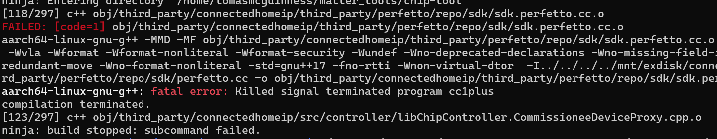 I was using an older Pi 4 with 4GB of RAM. This seemed insufficient for compiling the chip-tool.