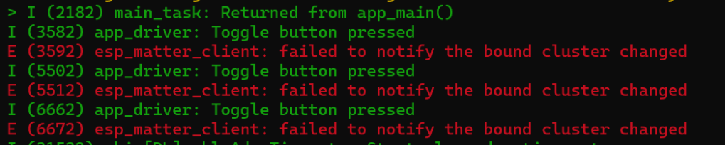 If we click the Boot button on the ESP32-H2, to “toggle” the light switch, we can observe the issue.