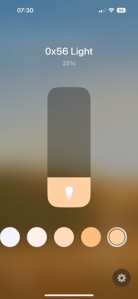 Let’s go back to iOS Home and add our Light directly. We should then be able to control the Light from both my ESP32-H2 and my iPhone. One of Matter’s most interesting features, for me anyway, is the ability to have more than one device controlling another.