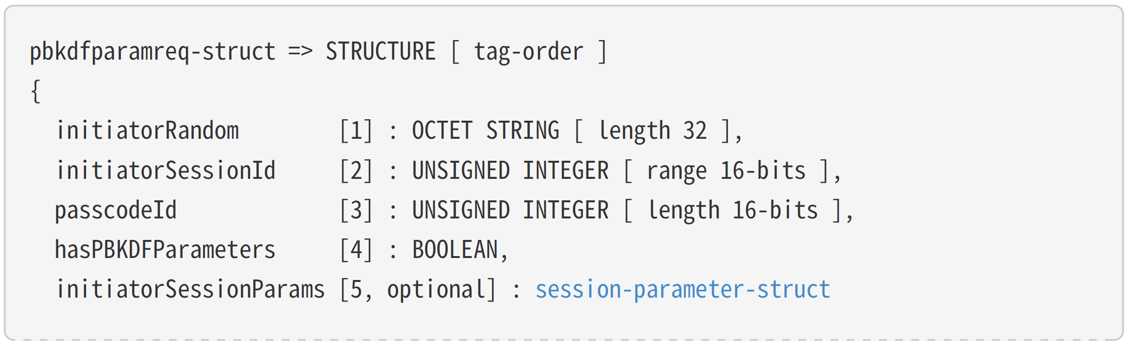 struct PBKDFParamRequest with an anonymous tag for the outermost struct.
