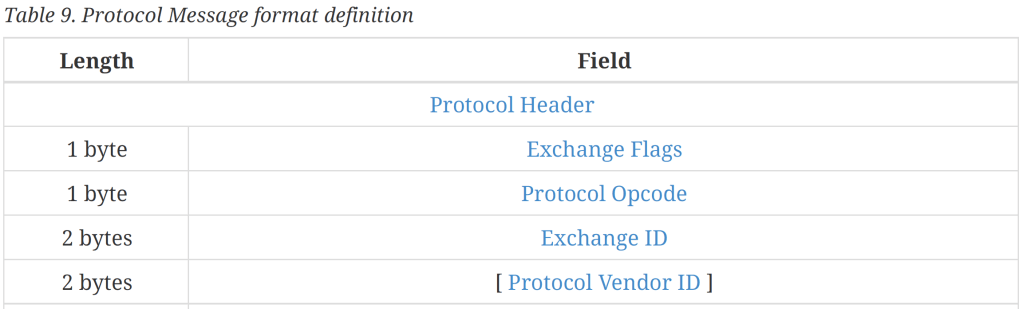 One of the first things I realised I needed was an Exchange. It’s not enough to just pass messages back and forth. You need to actually exchange messages. This explains the Exchange ID in the Protocol message definition.
