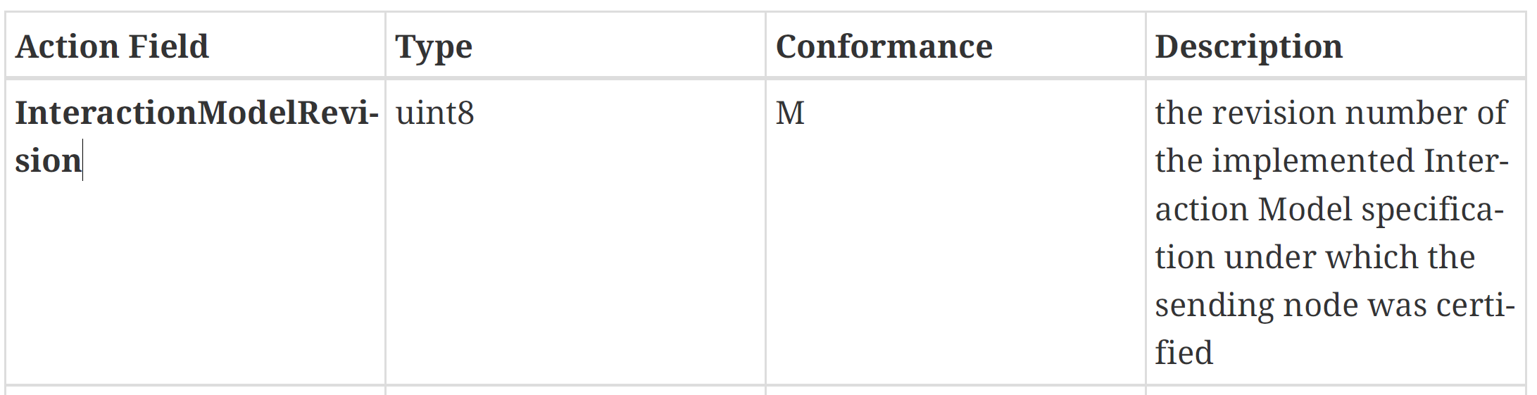 I guess I should have expected that. Add “1” as the value for InteractionModelRevision was a stab in the dark 🙂