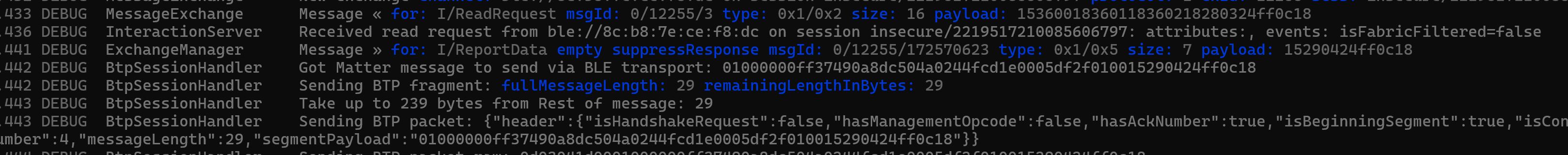 Another big milestone reached. Successfully encrypting and decrypting MessageFrames over UDP. I got a basic ReadRequest message into the matter-device and got a sensible response. Add to that support for a basic UDP connection and I’ve made some solid progress!