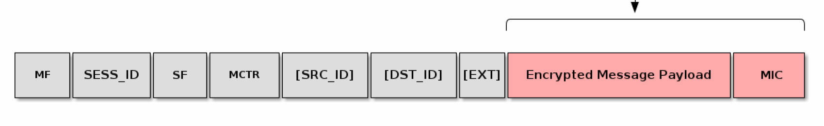 There is something called MIC and that gets appended to the payload. MIC, according to the spec, is Message Integrity Check. It comes out of the encryption process.
