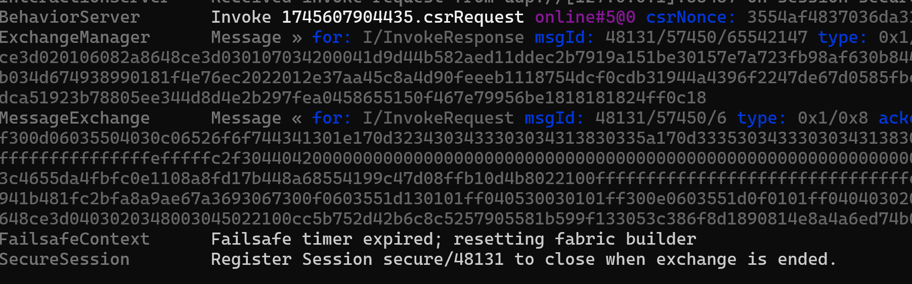 With a Root CA certificate generated for the Fabric, I decided to move onto the first CASE message, knowing I’d need to come back and add more to the Fabric.