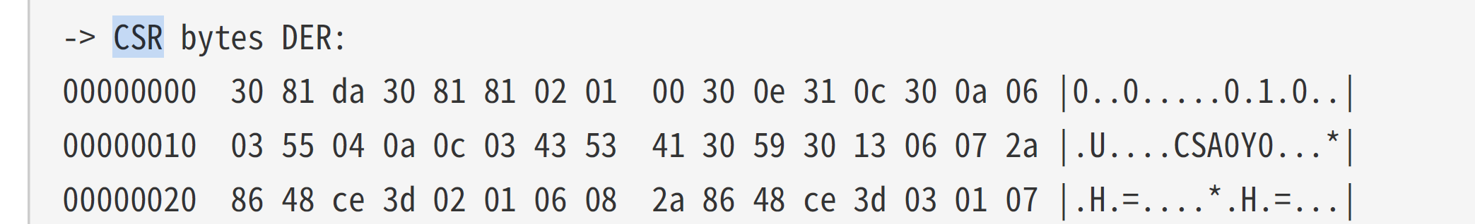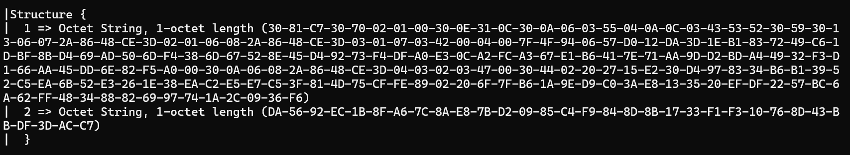 It appeared like the CSR was in a TLV format, so I just ran the bytes into my MatterTLV class. Interesting that worked and I got two Tags