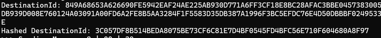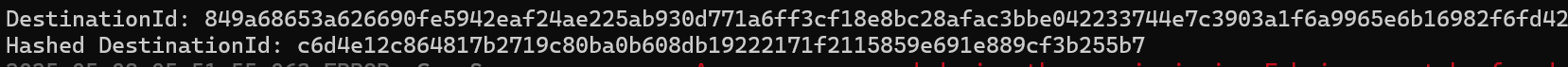 The DestinationId was correct. The hash was not.