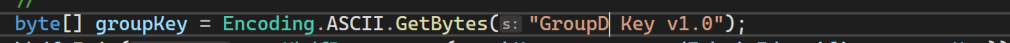 byte[] groupKey = Encoding.ASCII.GetBytes("Group Key v1.0");