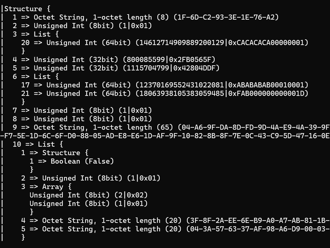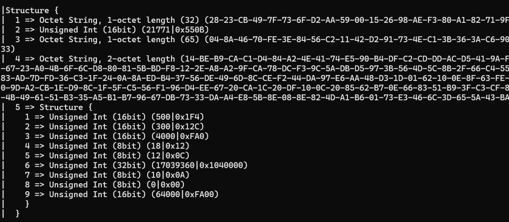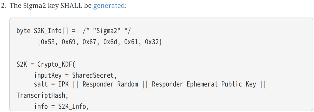 In this previous post, I started looking at how to generate the Sigma1 message, the first in the CASE (Certificate Authenticate Session Establishment) exchange.
