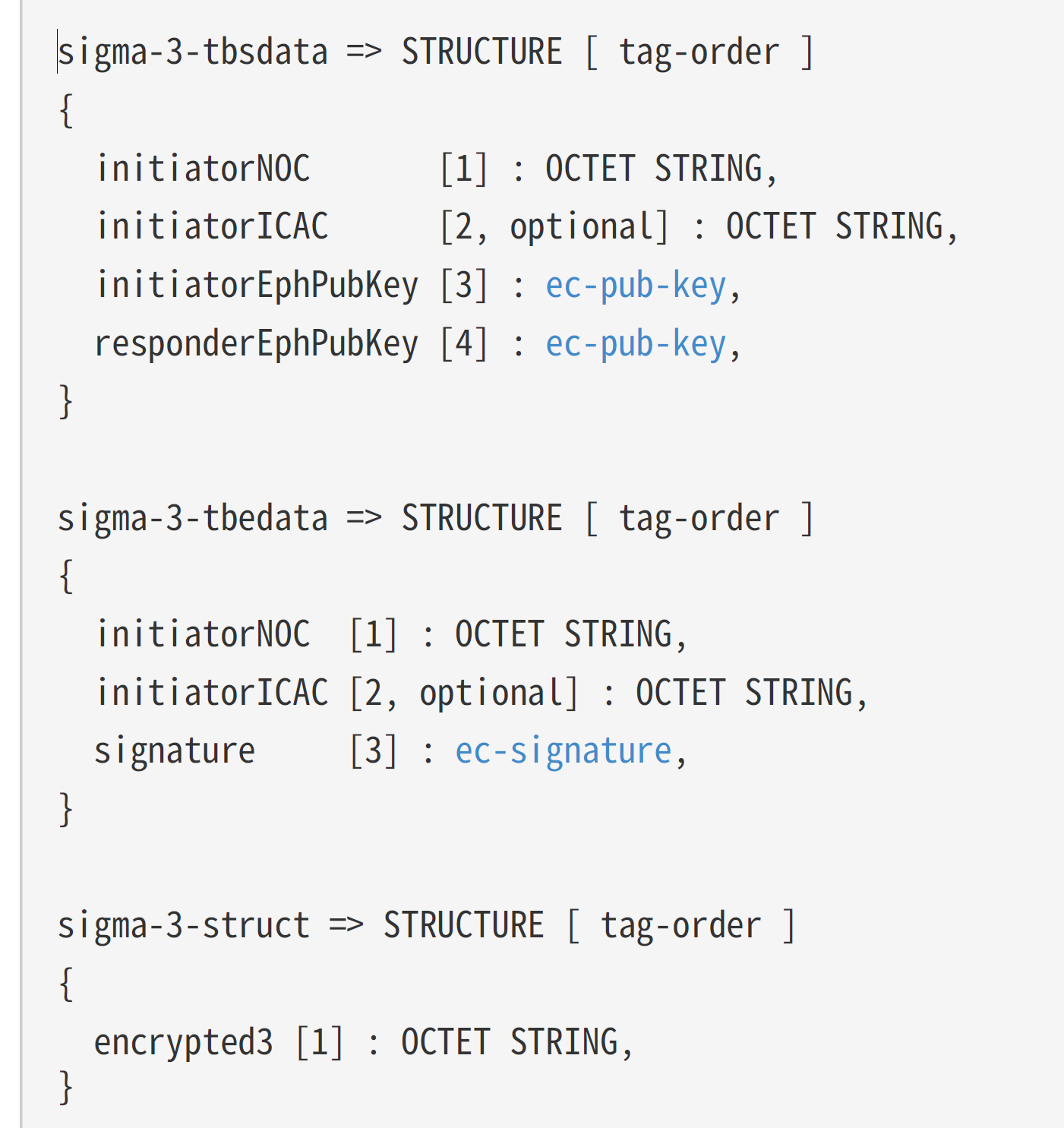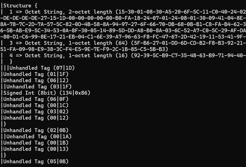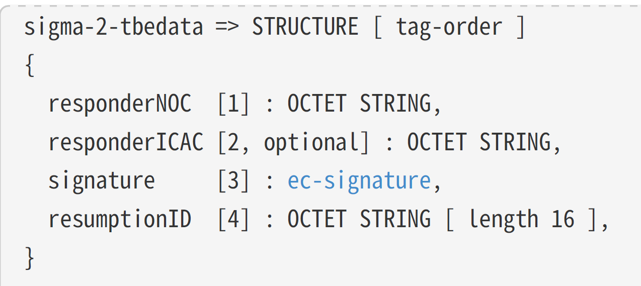 With the Sigma2 message barely handled, I moved onto generating and sending a Sigma3. The payload looks like this