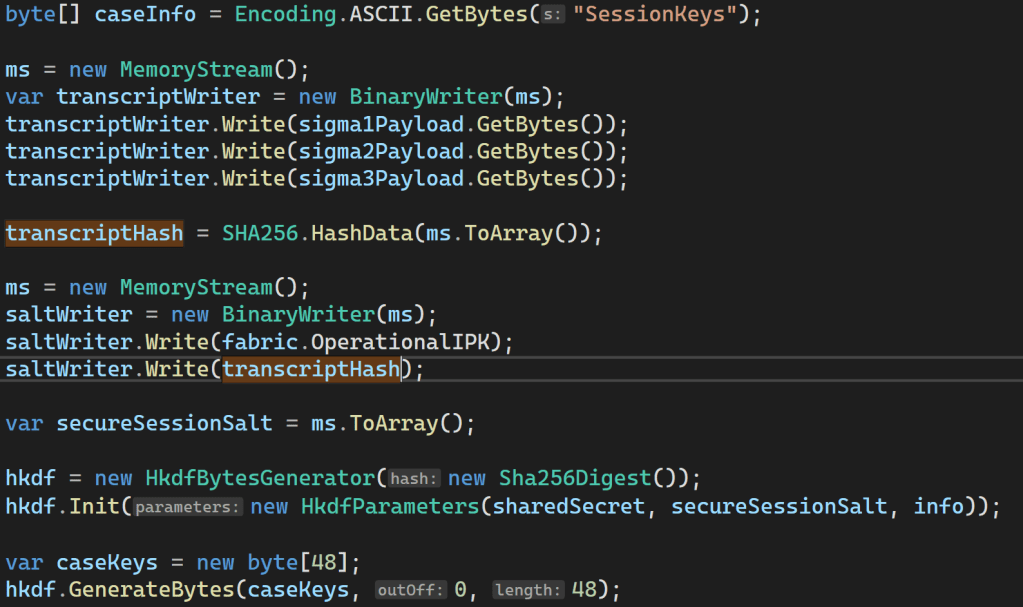 hkdf.Init(new HkdfParameters(sharedSecret, secureSessionSalt, info));
