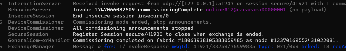The CommissioningComplete (0x04) is a Command belonging to the General Commissioning Cluster (0x30). It’s called using the IM InvokeCommand. I did this during the certificates steps to send the trusted certificate and Node Operational Certificate.