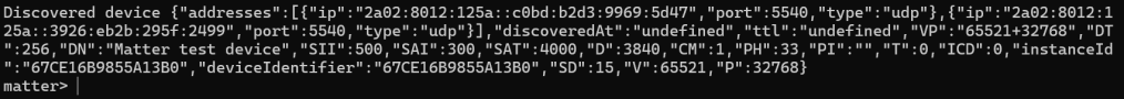 This started broadcasting itself as a commissionable device. The matter.js shell found it
