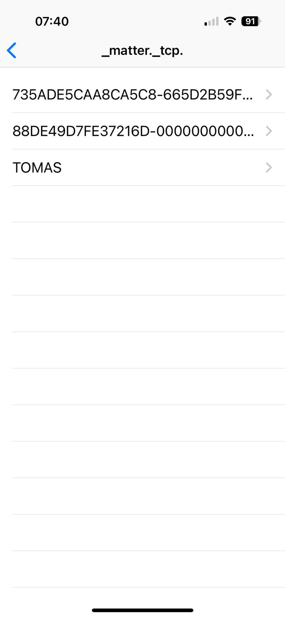 These are all the services available on my network. You can see _matter._tcp around the middle. If I open that, I can see my service, TOMAS