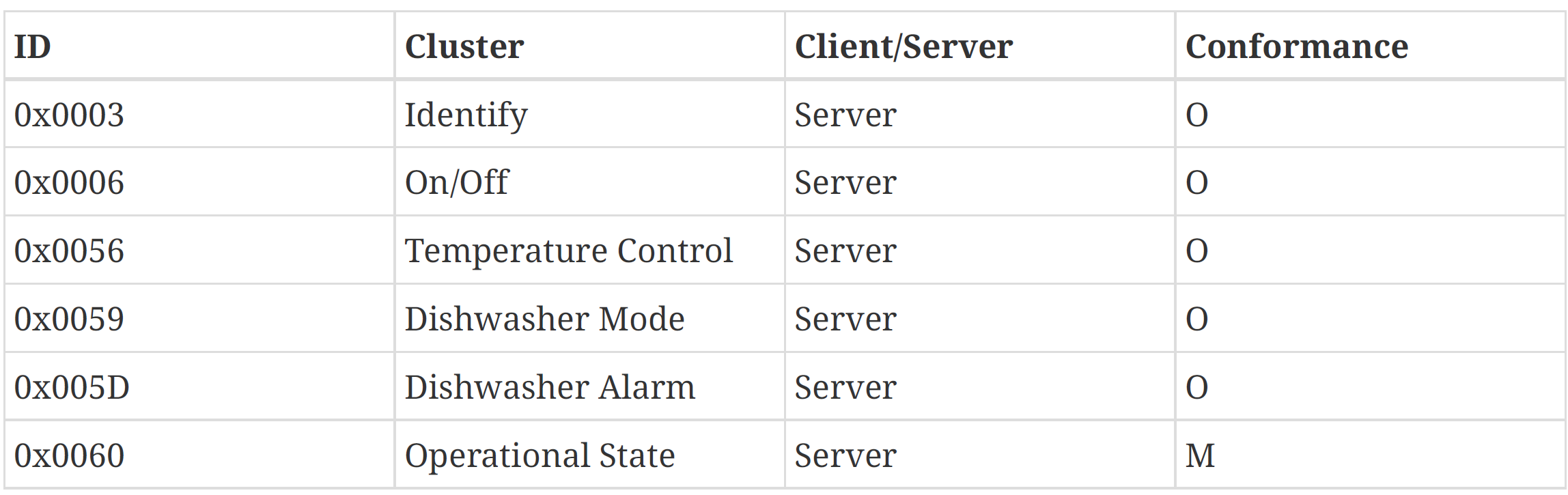 The only cluster that is Mandatory on the Dishwasher device type is the Operational State, which is how you start and stop the device.