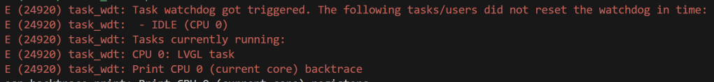 Whilst all this functionality was great, I started having issues related to the LVGL library 😦 Sometimes, I would get this error, where the panel wouldn’t refresh.
