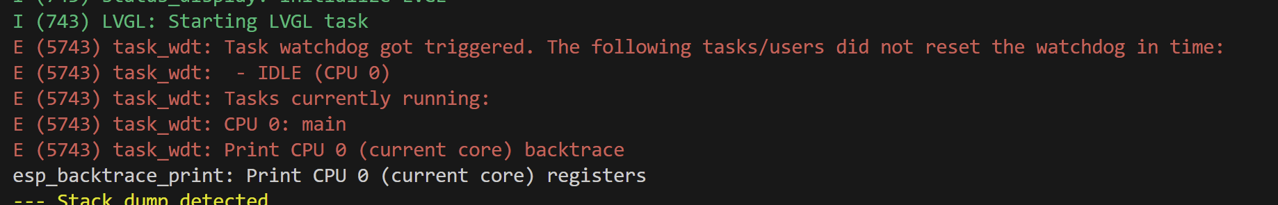This means something is gobbling up all the CPU time. And from what I can tell, it’s the LVGL task! If I remove the code that updates the three lines on the display, it works without issue.