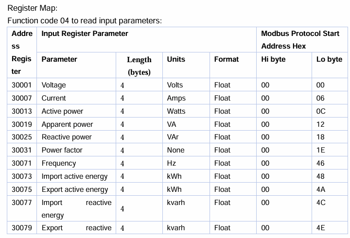 I did more googling and found this document: https://www.eastroneurope.com/images/uploads/products/protocol/SDM120-MODBUS_Protocol.pdf, which had this table