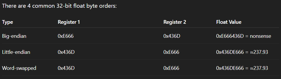I dug into the Modbus API a little more and found that you can configure different type of floats.