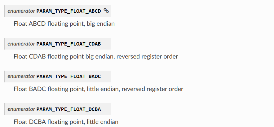 I tried PARAM_TYPE_FLOAT_CDAB as that seemed to