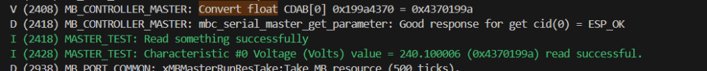 The ESP-IDF offers a few examples for modbus, but I knew serial was the one I wanted. My ESP32 would also be acting as a Master, so I chose that sample. I set the BAUD rate to 9600 and the mode to Modbus RTU, based on the specification of the SDM120.