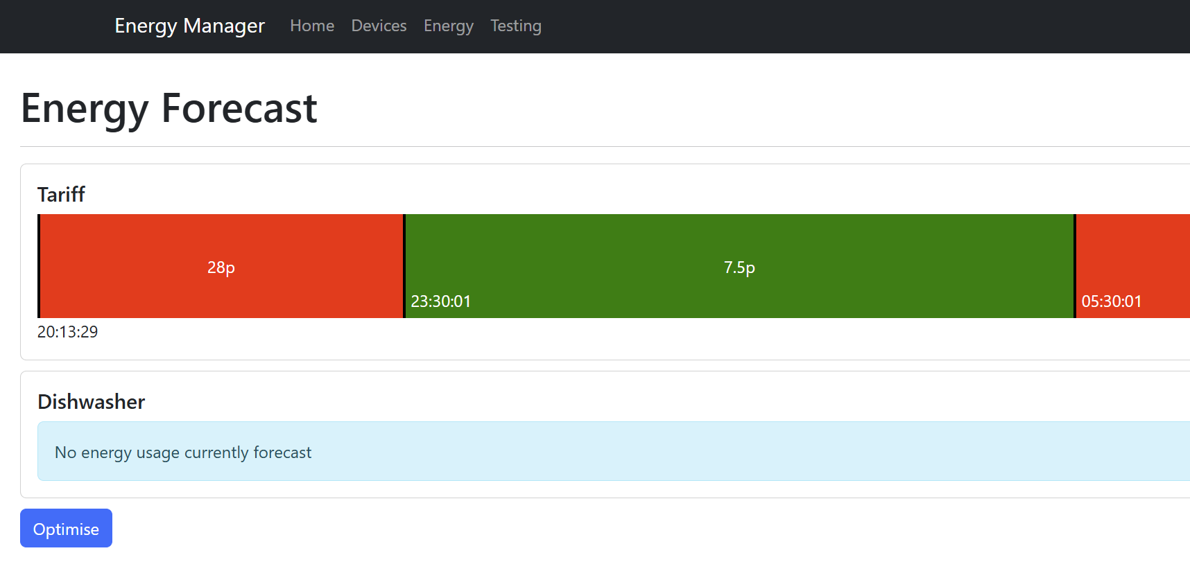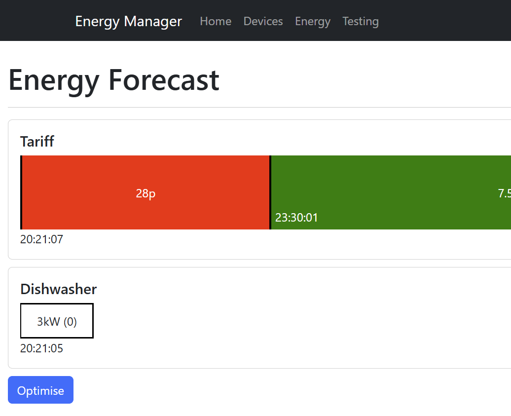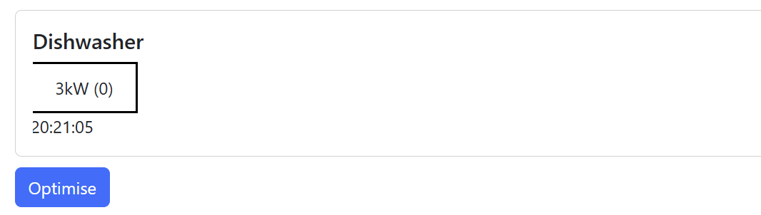 When I have a forecast and click Optimise, you can see the Dishwasher’s forecast move to the start of the off-peak time!