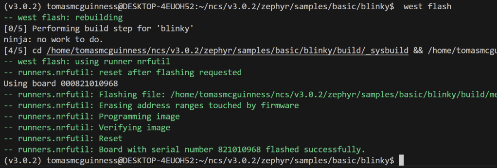 Blinky was already running on the board, so I decided to try and build and flash that sample again.