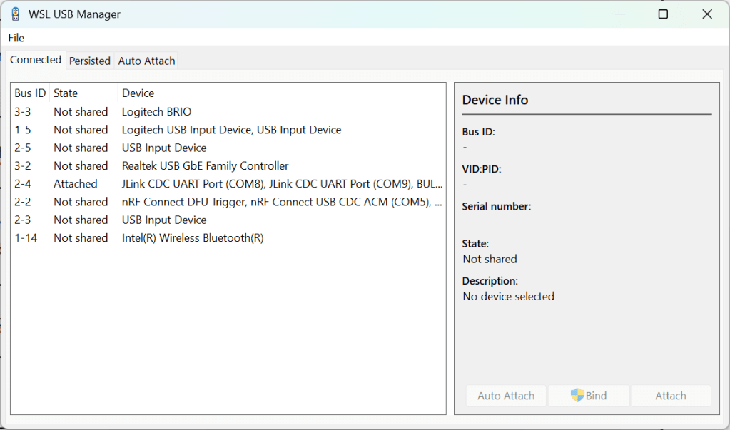 I then pick the right device from the list displayed by WSL USB Manager (a utility I downloaded)