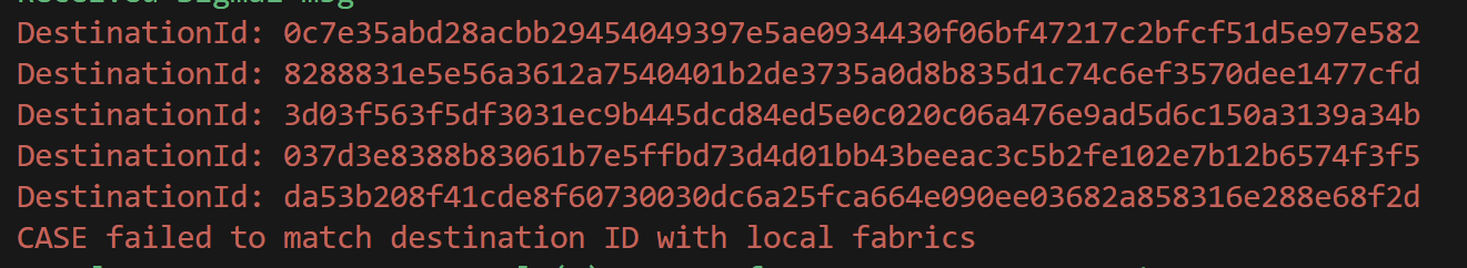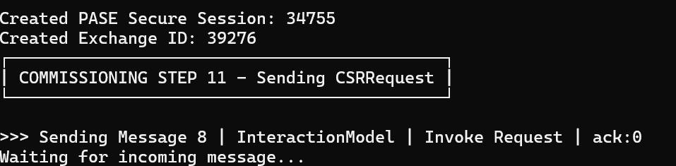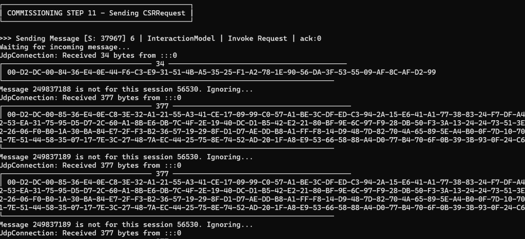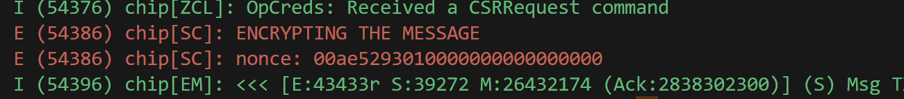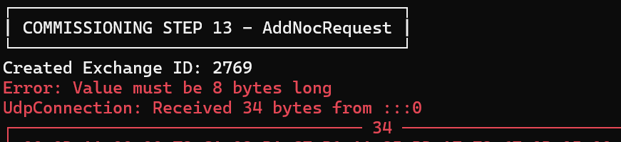 Fixing that to be just an 8 byte number, the commissioning then got as far as the CASE exchange!